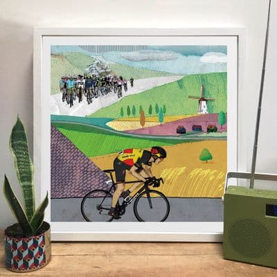 Cycling artwork print, celebrating the annual Amstel Gold Race held each year in the province of Limburg, the Netherlands. A must have for cyclists and cycling enthusiasts and also makes a wonderful gift.