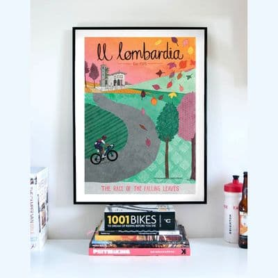 Il Lombardia cycling artwork print, a celebration of one of the most prestigious one-day events in cycling, and one of the five "Monuments" of the season. A must have for cyclists and cycling enthusiasts and also makes a wonderful gift.