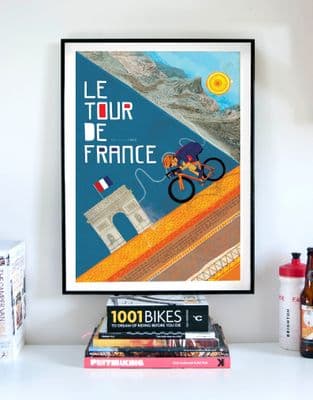 Cycling artwork print, celebrating the most famous cycle race in the world, the Tour de France. A must have for cyclists and cycling enthusiasts and also makes a wonderful gift.