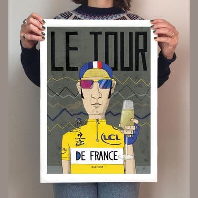 Tour de France cycling poster illustration print, celebrating the most famous cycle race in the world. This is one of the grand tour portrait illustrations - a must have for cyclists and cycling enthusiasts and also makes a wonderful gift.