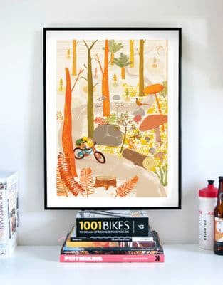 "Orange Woodland Mountain Biking" Cycling Illustration Print
