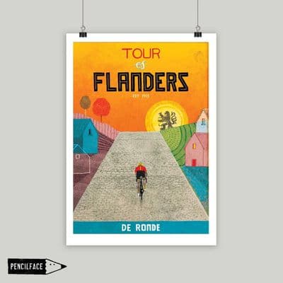 Tour of Flanders cycling artwork print, a celebration of the one of the oldest cycle races in the world. A must have for cyclists and cycling enthusiasts and also makes a wonderful gift.